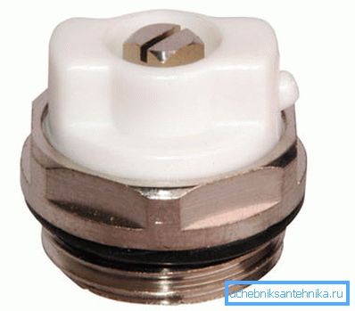 Traditionally Mayevsky's crane is installed in the upper side of the radiator, where it is screwed in as a plug. Structurally, the product is a small washer with thread on the edge. The metal core of the accessory is melted into a plastic case.