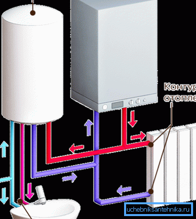 Such a scheme, in particular, is used in modern homes with autonomous apartment heating. The only restriction associated with it (except, of course, volatility) is the need to place the boiler on the outer wall of the house.