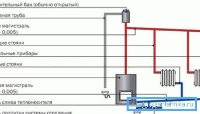 Specify: as a rule, the heating circuit has a significant height. At least - much more than a boiler. To overcome this problem, the circuit immediately after the boiler is completed with an accelerating collector - a vertical section into which the heated coolant is forced.