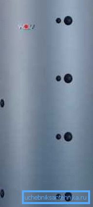 A solid fuel heat storage tank is structurally a tank with a coolant, which is heated during combustion of the fuel in the combustion chamber of the boiler. After all the fuel in the boiler burns through, the heat accumulator gives its heat to the system, as a result of which the optimum air temperature can be maintained in the building for some time.