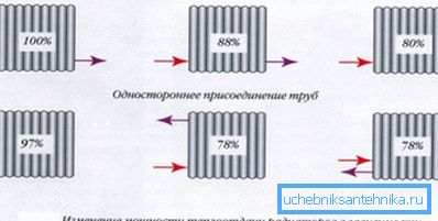 Note! The method of connection also plays a large role in the uniformity of its warming up, and therefore the heat transfer.