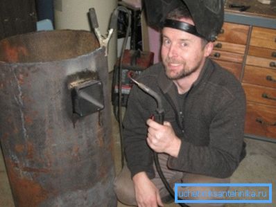 Note! The stove in the bath of the pipe is made using a welding machine, therefore equipping the hearth, take care of the availability of a stable source of electricity.