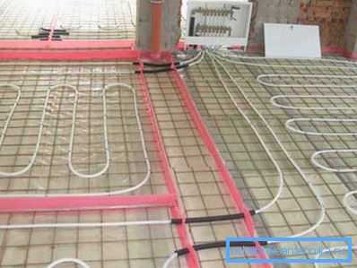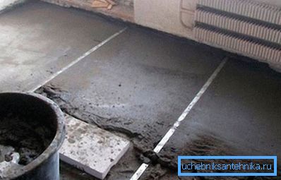 - Pour in the screed, for which use a conventional mortar based on sand and cement. Make a flat floor surface. All connections for supply, removal of coolant, as well as for monitoring its temperature, pre-bring to the surface.