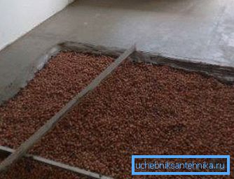 - To fill the screed, if it is made on the first floor, we definitely need insulation and the cheapest and highest quality option, is expanded clay, or expanded clay sand. Its price will be 4-5 times lower compared to extruded polystyrene foam. In addition, you will need a cut-off waterproofing, which you need to lay on a rough base, but not on a sand-rubble cushion, as some recommend it. The reason is that waterproofing prevents moisture from entering sand, crushed stone or sifting, and a dry cushion contributes to a decrease in thermal conductivity, therefore, the cut-off over it simply does not make sense!
