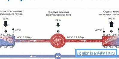In this case, energy is spent not on heat generation, but on its transportation from low-potential sources. Simply put, the heat pump takes heat energy from the cold environment and gives it to the warm air in the house.
