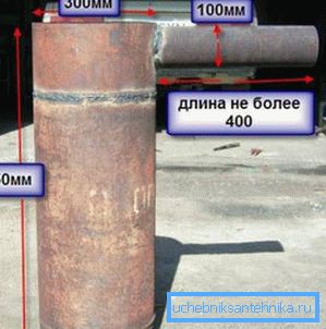 - At the top of the unit is welded chimney. First, the pipe should go horizontally, then it is passed through the heat exchanger of the heating system, which has the form of a tank.