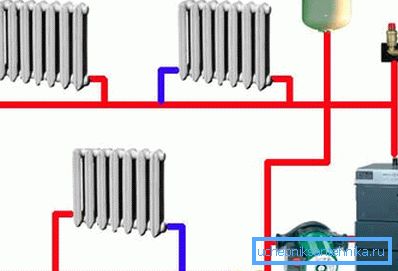 The meaning of this system is to use two pipes - for a hot coolant and separately for return. In this case, it requires almost twice as many pipes, which increases the cost of replacing heating.
