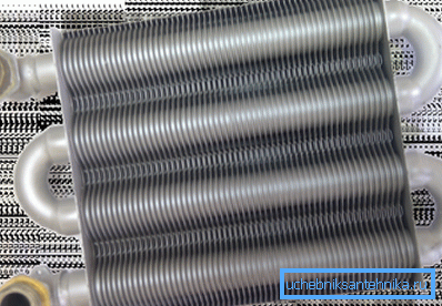 Structurally, such a heat exchanger consists of a cylinder, where combustion takes place, around which pipes with circulating water are arranged in a spiral. The fuel in such boilers is a gas-air mixture, because the heating equipment and requires a two-channel coaxial pipe, carrying out fresh air intake from the street.