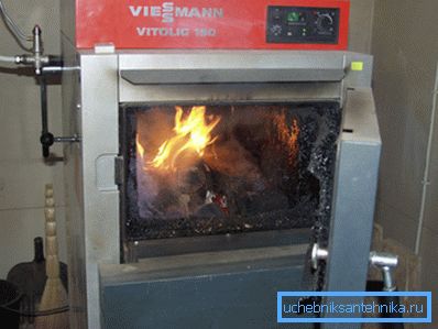 Burning gases pass through a heat exchanger through which water circulates and are removed through the chimney. All parts of the furnace and gas channels are made of heat-resistant alloy steel and porcelain concrete, heat exchangers - from copper or other metal with high thermal conductivity.