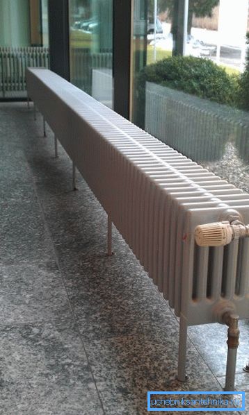 The complete opposite of the previous solution is heating appliances with sections of considerable (from 800 to 2400 mm) height. They are advantageous where the shape of the walls or the location of the furniture limits the use of traditional batteries of greater length. In the role of material for them can be aluminum, steel or a combination thereof.