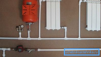 The construction of such a structure will require more serious calculations of hydraulics, selection and installation of a circulation pump, installation of protection, a closed accumulator, pressure gauges and safety valves. At the same time, there are no special requirements for the inclination of pipes.