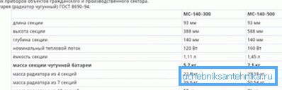 The weight of 1 section of a pig-iron radiator of heating, directly depends on dimensions and internal volume. In turn, the dimensions of the structure in the collection affect the amount of heat generated.