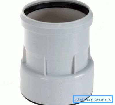 - Virtually any transitional elements can be used in the sewage system - the pressure inside the pipes is low, so that tightness can be achieved almost without effort.