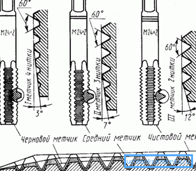 As a rule, when cutting threads, a set of two or even three tools is used. For example, when cutting a half-inch thread, the future coupling (drilled cylindrical workpiece) first passes a rough pipe tap 1: 2, then finishing. When cutting in one pass increases tool wear, and the quality of the thread is much worse.