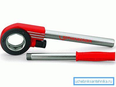 - Ratchet - crank with one handle, double body and reverse clutch. He also allows you to cut the thread against the wall. Unlike the mandrel, on which the gas key leaves a teaser, the ratchet does not receive mechanical damage in the course of the work, and it is much more convenient to use it.
