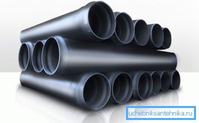 | Polyethylene | Used to construct internal and external sewer systems. The disadvantage of this material is a small temperature range of operation (from - 40 to +40 degrees Celsius). Therefore, the use of polyethylene in sewer systems designed to divert hot water is impossible. |
