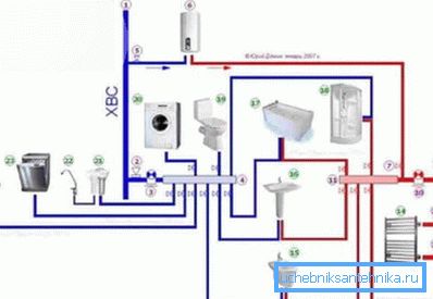 There are, of course, many options for wiring, and they depend on the location of sanitary appliances in the premises.