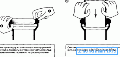 This connection of cast-iron and plastic sewer pipes is often used when joining the first, but it is also suitable for our case.