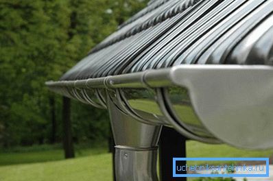 The shape of the section metal gutters are also different. Can be round, square, rectangular. Rectangular and square are more capacious, and the first more, and have greater rigidity. Round less roomy, so they decided to use for private homes. However, they have less resistance to the flow of water and debris due to the absence of corners.