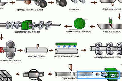 - The next stage is the formation by rolls of a round billet. Passing several rolls with rolls, the strip is rolled into a tube - still open.