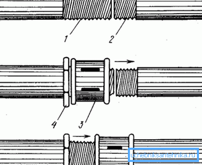 - After this, it is necessary to bring the end of the sgon to the pipe and unscrew the clutch so that it gradually begins to move onto the pipe.. The more precisely the axes of the parts coincide, the easier it is to complete the connection.