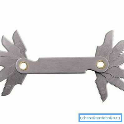 The thread meter works even easier. This tool contains measuring plates that resemble a set of nail files. These nail files are applied to the section with coils. If the profile matches, then the cut value corresponds to the value indicated on the tool plate.