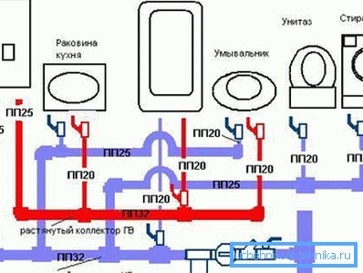 By and large, the basic layout of water distribution in the country, in a country house or in an apartment is absolutely no different, since in any case there is a source of hot and cold water, as well as bathrooms, where pipes are brought. Currently, such wiring in most cases are made of polypropylene.