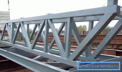 Any farm consists of such elements as a belt (upper and lower) and bracing. In addition to the profile of the pipeline, they can be made of I-beams, corners and other rolled products. But trusses from rolled products are much more convenient to manufacture, while the weight of the structure remains small (it can be determined by GOST).