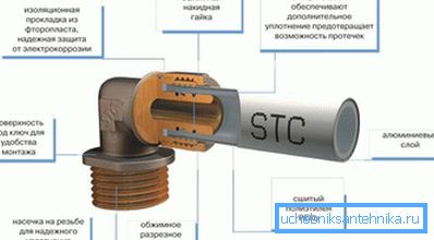 The fitting is indispensable when installing pipes on the basis of metal-plastic, because there are situations when the system urgently needs to be dismantled or removed from it some parts for their replacement or maintenance. Then, thanks to fittings, everything can be easily and quickly dismantled.