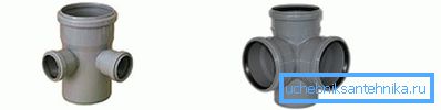 Here we can distinguish two types of tee. The first is a simple tee that allows you to connect a vertical and horizontal sewer pipe. When this tees are made with different angles, for example, 45 °, 67 °, 90 °. The second type is a 90 ° three-socket tee. It allows you to make similar connections, only with a pipe of a different diameter.