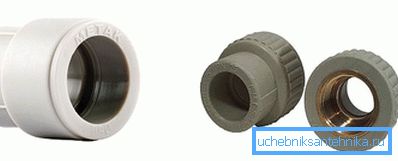 This adapter differs from the coupling in that there is a different internal diameter on the two sides of the barrel. Moreover, there are adapters for connecting polypropylene with metal through a thread. Such adapters are with external and internal thread.