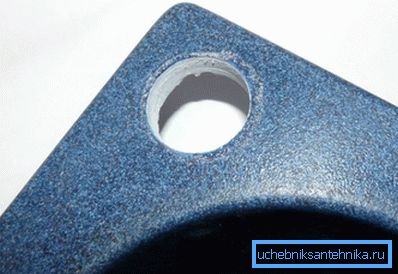 - Before drilling a sink made of artificial stone, you need to purchase a special carbide-tipped drill bit or a special crown with a diamond or tungsten coating. At the same time, you should choose quality products, since there are frequent cases of selling drills and crowns that wear out literally before our eyes.