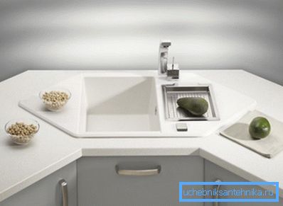 Corner sink of stainless steel or artificial stone will allow much more efficient use of kitchen space. This option is especially relevant for small premises. In this article we will look at this type of sink in more detail.