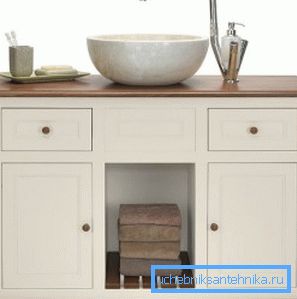 The most exquisite sink without a decent frame looks like an unfinished interior detail. Even a simple, wooden pedestal under the sink will create not only a visual order, but also bring a lot of benefit to the household.