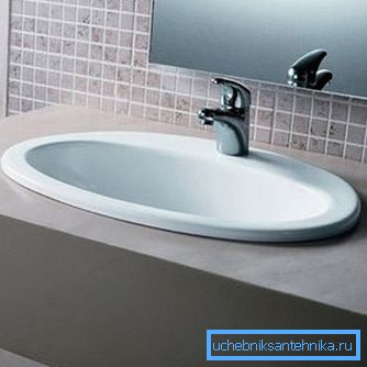 Note. The installation of the bowl may depend on the material, that is, it will determine at what height the sink or in what way it is fixed to the table top. Bowls are made of porcelain, earthenware, glass, artificial granite or marble, as well as stainless steel (kitchen sink). The highest price for artificial marble, granite and glass.