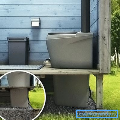 - The liquid type of modification of the toilet works with chemicals, as a result of which it is not recommended for installation on the garden plot, because recycled waste is rather detrimental to the natural resources of the planet.