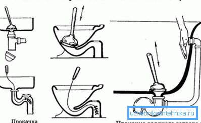 Elimination of sewage pipe blockages with the help of a plunger is based on the effect of local hydro or pneumatic impact. The instruction requires to collect water into the sink, so that the bowl of the plunger is completely hidden under water.