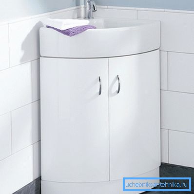 The only restriction is the need for capital stone walls, since it is impossible to hang such pedestals on hollow and plasterboard structures. (See also the article The Corner Shell: Features.)