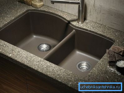 Due to the fact that for the production of used polymer composition, granite kitchen sinks are available in various shapes and sizes. The most popular classic and rounded rectangles, which may include one or more bowls.