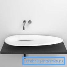 | Design | Sink today is important, and sometimes the main element of the bathroom interior. It is already not just a sink - a utilitarian sanitary device, but a design object that carries a certain message. In this case, the functionality is not central, so it fades into the background. Although, is it convenient to use for washing a small dish O 300 mm or a flat pallet, slightly recessed into the tabletop? Splashes are flying everywhere that have to constantly wipe. But I must say that not everything is so bad, many designer models combine not only decorative, but also functionality. |