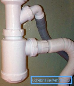 | Bottle | These are the most popular knees, since it is very easy to clean the system here - it is enough to unscrew the so-called bowl of the device, shake out the garbage from it and you can screw the “storage” container back. That is, it turns out that in case of installing such a device, it is not necessary to remove it completely to clean the accumulated dirt. In principle, this is a very good option, however, the element requires a certain amount of free space under the sink, in addition, installation of the product requires skill and accuracy. |
