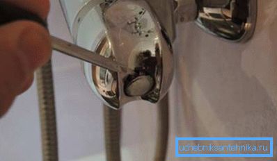 By design, the devices are similar to those installed in conventional faucets for a washbasin in the bathroom or for kitchen sinks. A slightly different cartridge for switching mode from the main watering to the "tropical shower", body and foot massage. He has on the back not two outlets for water, but four.