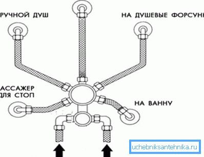 - all that remains to be done is to correctly connect the hose from the central panel to the hand and upper shower, as well as to the hydromassage panel. In order to avoid confusion, you can orient along the length of the hose, usually the longest used for a tropical shower. medium length - for a hand shower, etc.