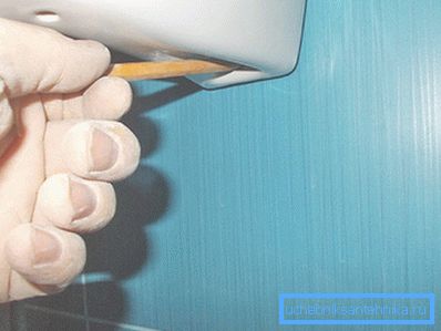 - Take the sink and set it on a pedestal in the mounting position. Through the mounting holes at the bottom of the bowl with a pencil we mark the places of fastening the brackets, having previously leveled the device using a level. We remove the shell and pedestal;