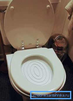- Now the crucial moment: remove the tray from the toilet bowl, lift the lid, take a piece of flexible plastic (buy at a hardware store) and fasten it on the toilet seat. Pour a filler in the middle of the strip. The cat will try to sit on a strip, but it will sag, and he will be forced to sit on the rim;