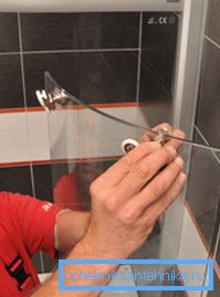 We continue to consider the question of how to seal the shower cabin with our own hands and put U-shaped seals on the fixed panels (on the vertical), and from the side of the doors this seal comes with an apron that prevents water from entering the gap between the movable and fixed panel.