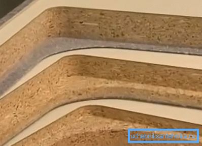 - Now we need to turn the table upside down (with the wrong side up) and begin to choose the grooves for the size of the sink and in this case it took three steps, as seen in the top photo. But such a number of grooves is not needed for each bowl - everything will depend on the configuration of its turn-down sides and for another option, you may need to choose only two slots from the bottom. After work with a selection of grooves of the cutting place, it is necessary to treat with a solvent (646, 647, white spirit) or isopropyl alcohol to remove the resins, which are always in the particle board.