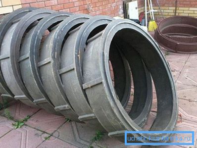 The ring is a cylinder with a height of 20 cm, the outer diameter of which is 106 cm, and the inner diameter is 97 cm. The lower end of the ring has a ridge, and there is a groove on the upper end. The number of rings dialed depending on the depth of the well.