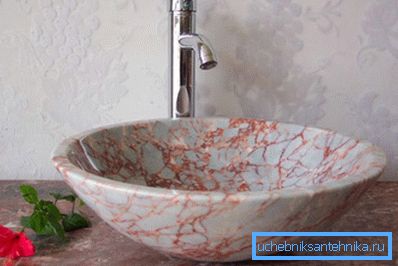 - The most expensive and prestigious material for the manufacture of countertops and sinks, perhaps, can be called marble, but it is very difficult to process and transport because of its fragility, besides, during operation you should beware of sharp blows.