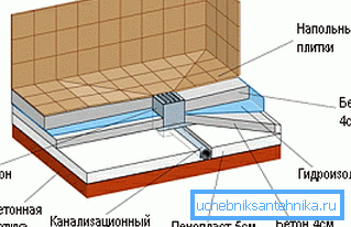 - First of all, the construction for draining, which is called the shower drain, is displayed in the middle of the platform; its main advantage is a small height, so that the structure can be hidden in the screed. Pipes are attached to the drain, it is important that all connections are as reliable as possible, for this the joints are additionally treated with sealants.
